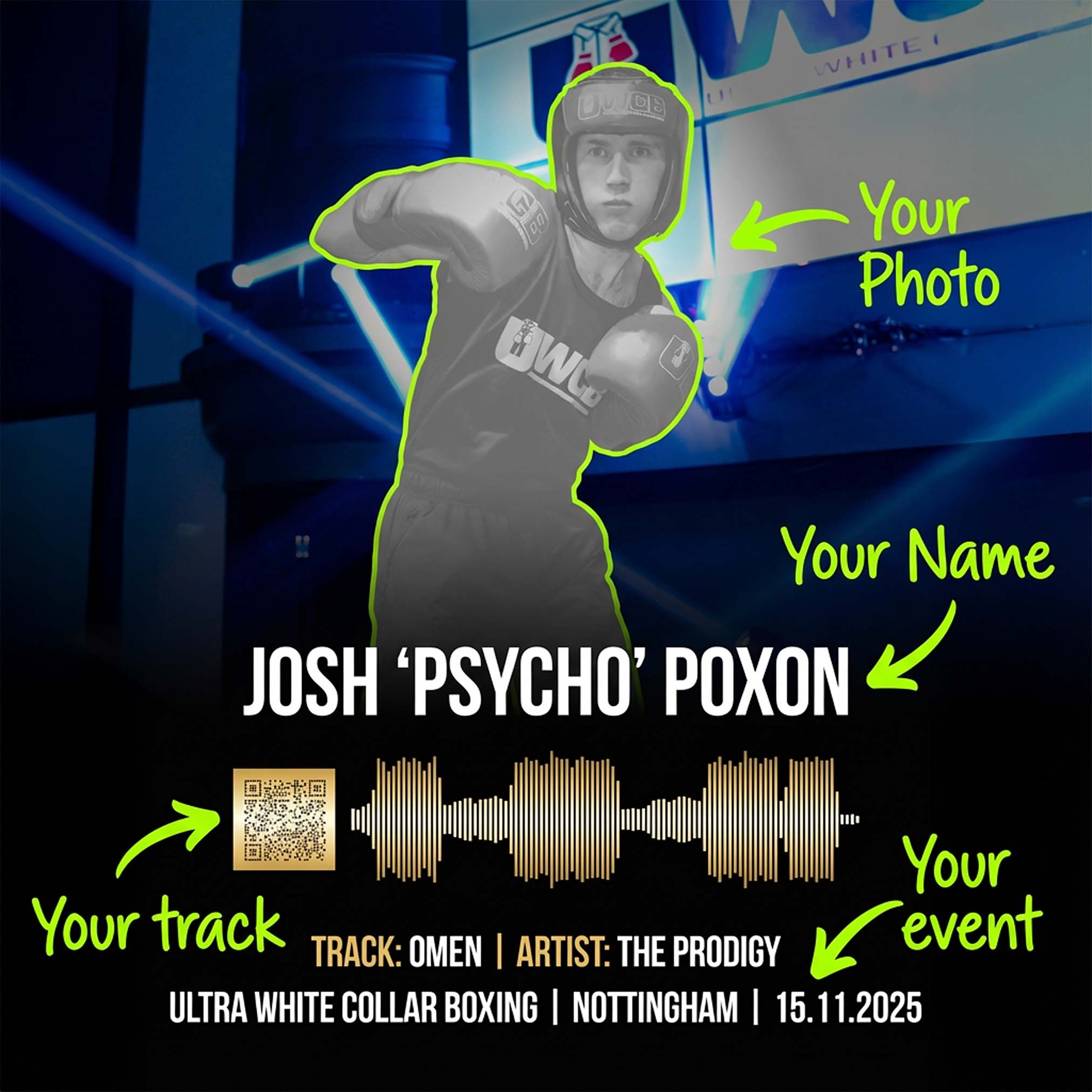 Secure your frame now, customise it later. We will collect your fight details (Photo, Song, Event) immediately after checkout.